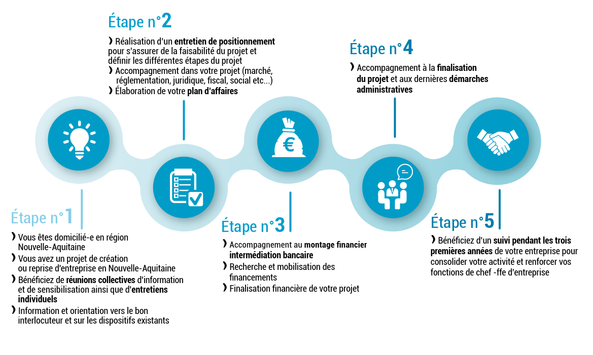 Dans le cadre de ce dispositif, vous pouvez bénéficier d’un accompagnement personnalisé en 5 étapes.